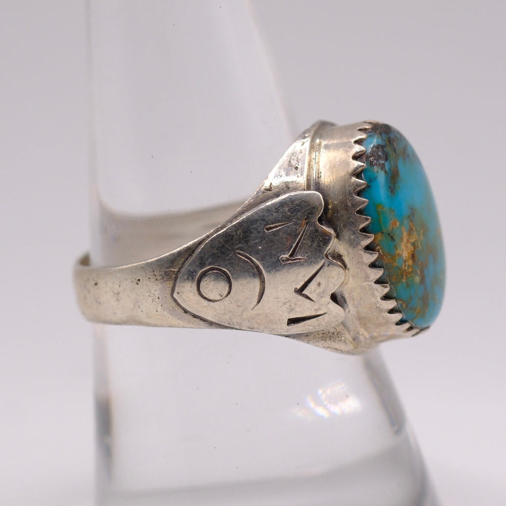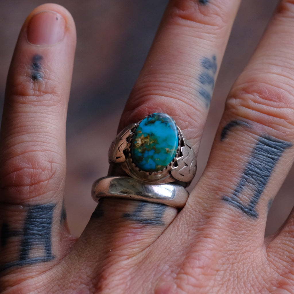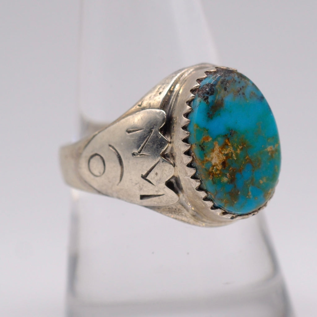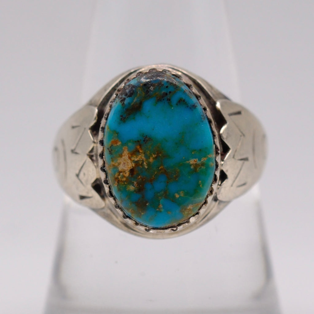 Vintage Sterling Turquoise Stamped Band Ring