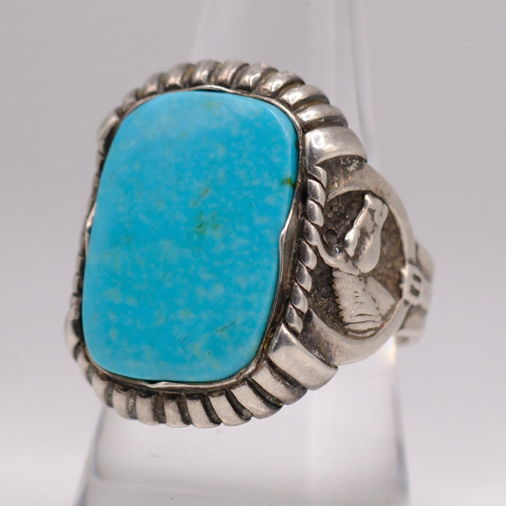 Vintage Sterling Turquoise Horseshoe Ring 10