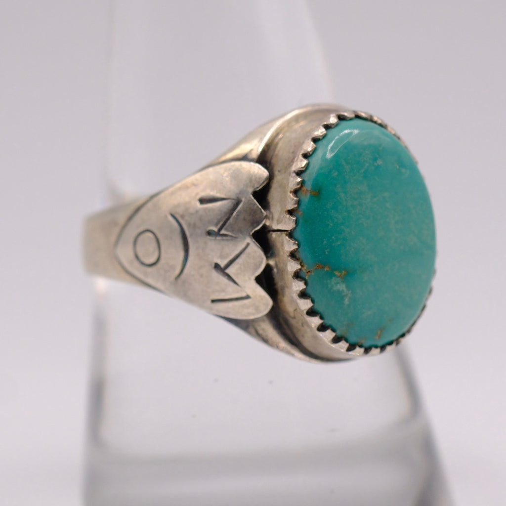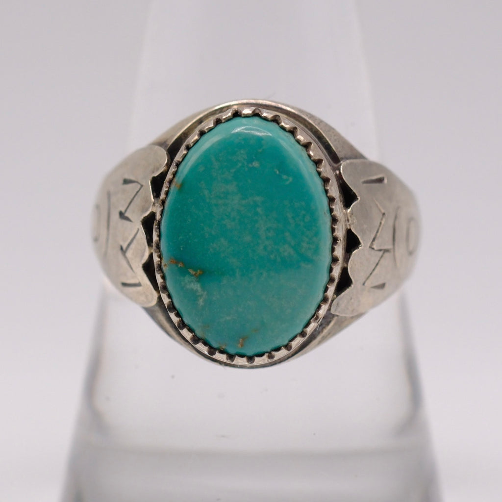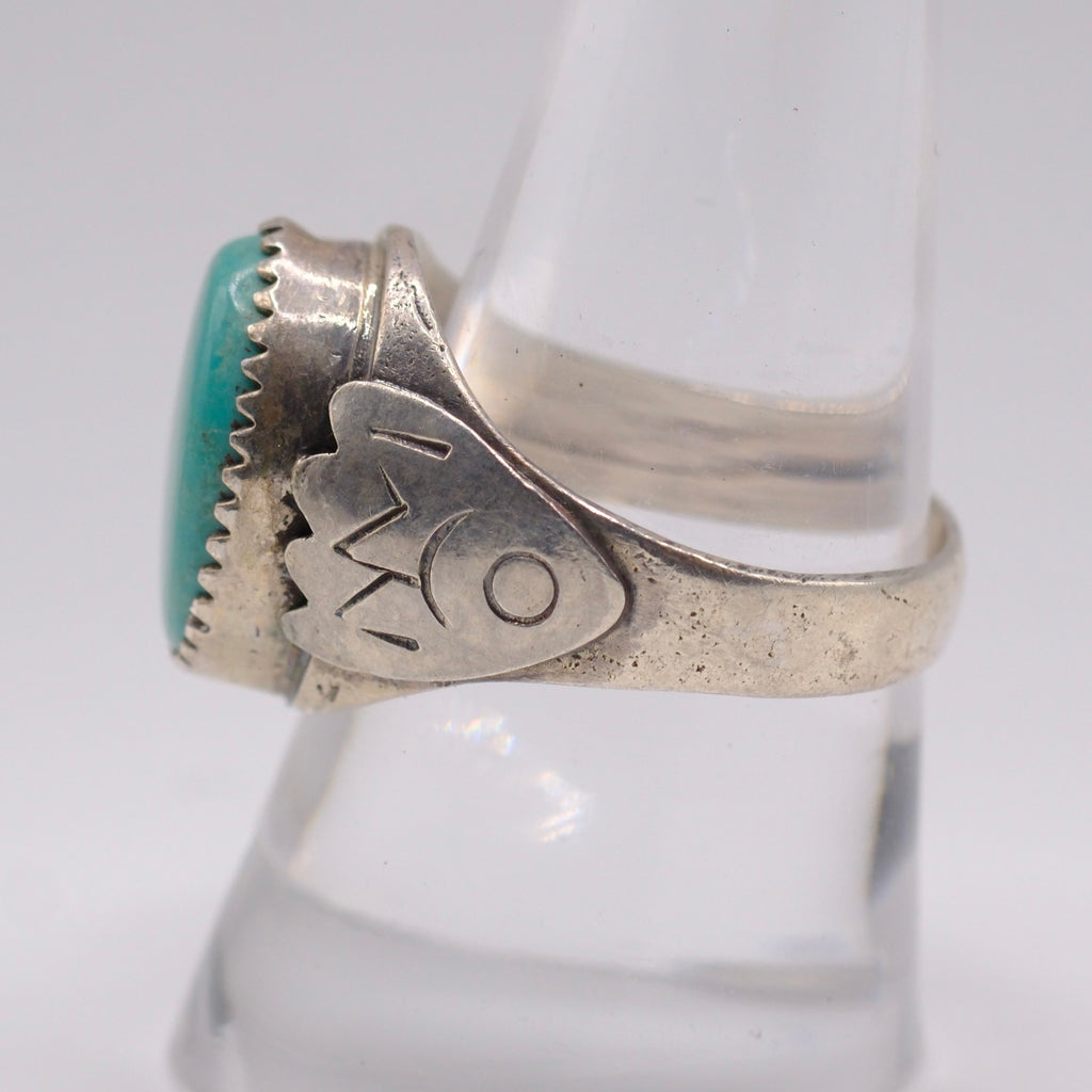 Vintage Sterling Turquoise Stamped Band Ring 9