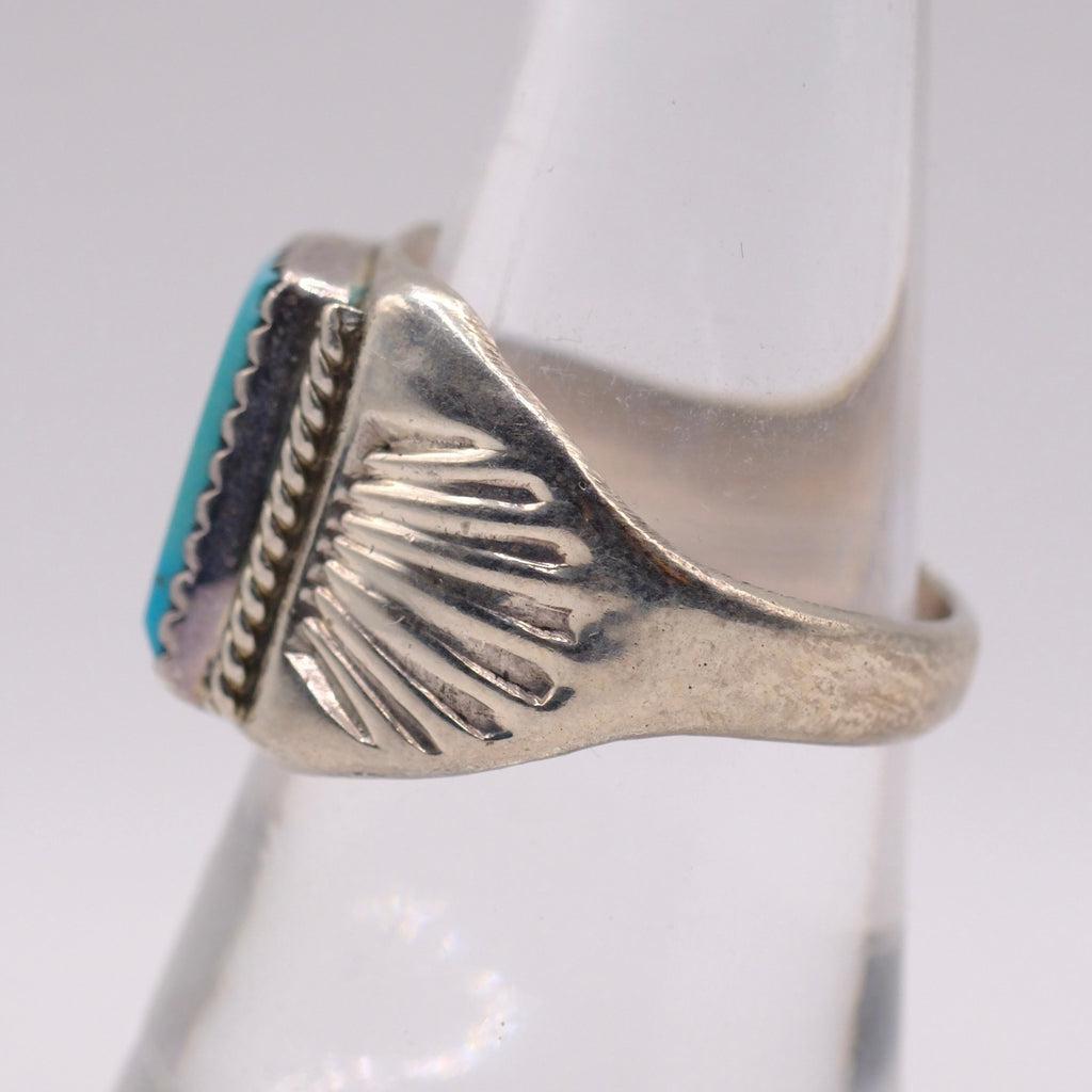 Vintage Sterling Turquoise Stamped Band Ring 8.25