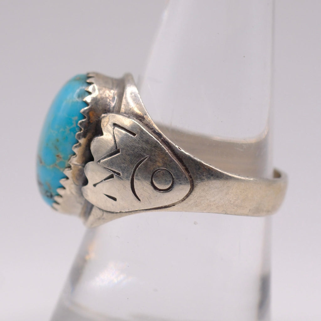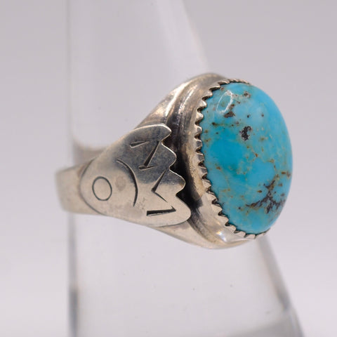 Vintage Sterling Turquoise Stamped Band Ring 8.25