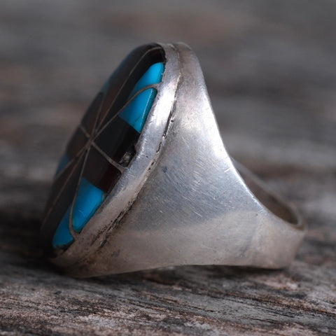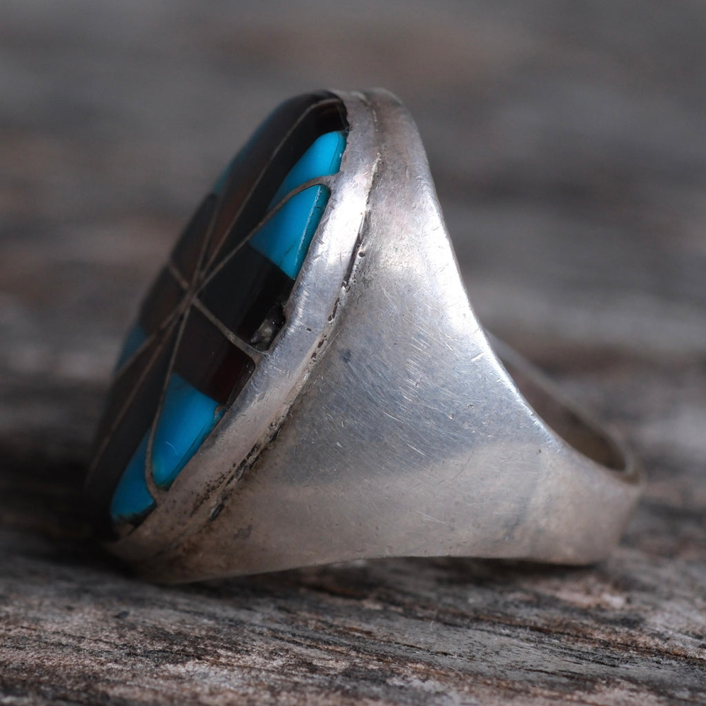 Vintage Sterling Turquoise and Shell Inlay Ring 10