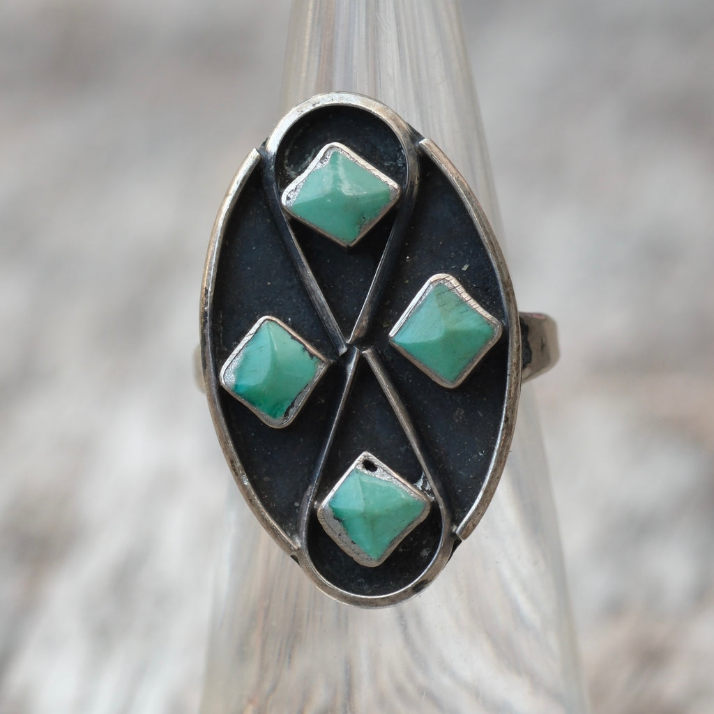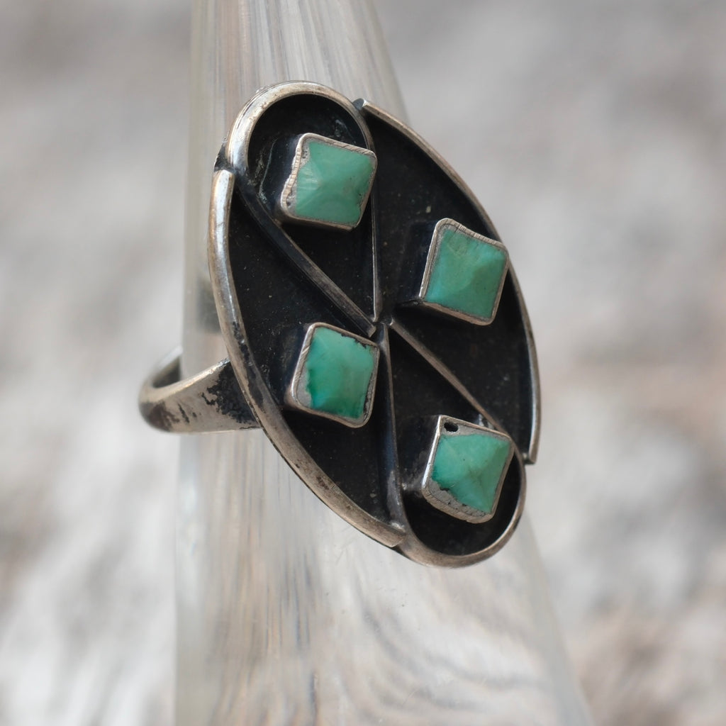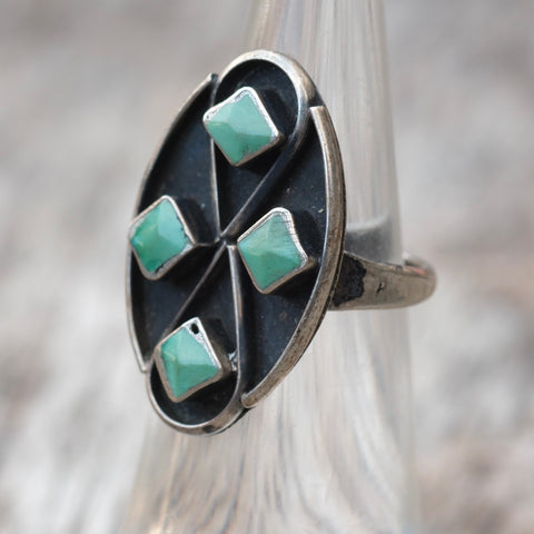 Vintage Sterling Turquoise Cluster Ring 4.5