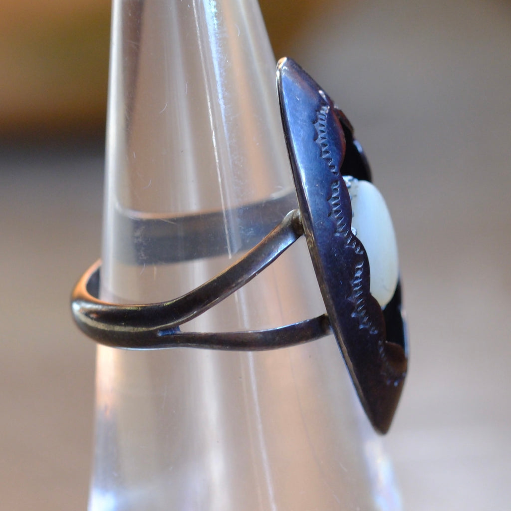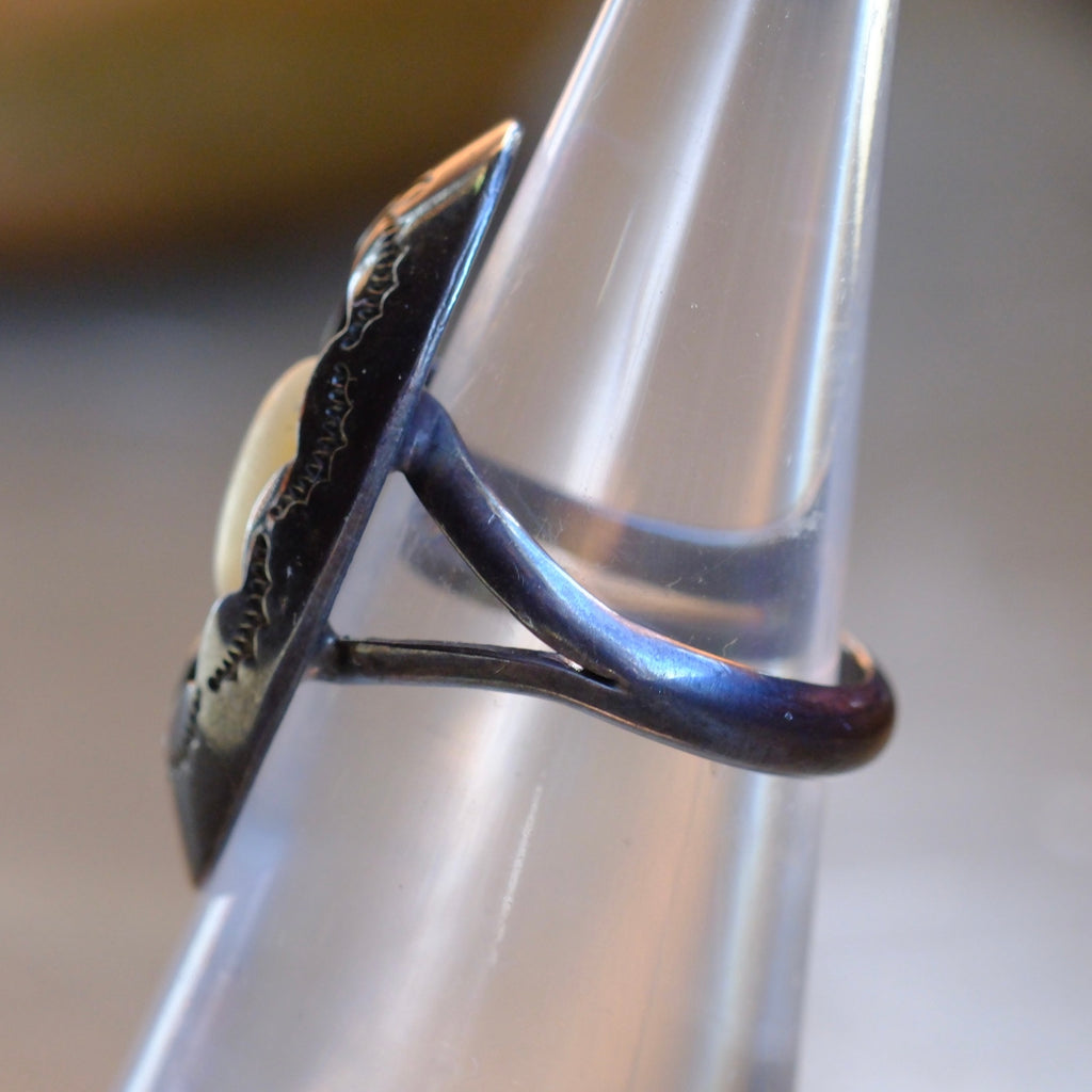 Vintage Sterling Mother Of Pearl Shadowbox Ring