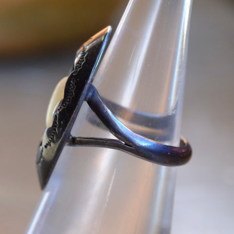 Vintage Sterling Mother Of Pearl Shadowbox Ring 6.25