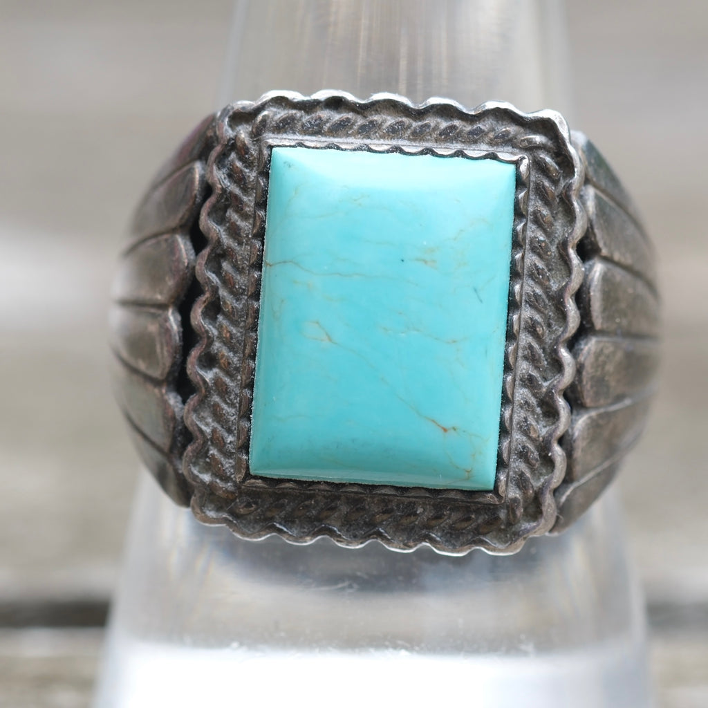 Vintage Sterling Turquoise Ribbed Band Ring 9.75