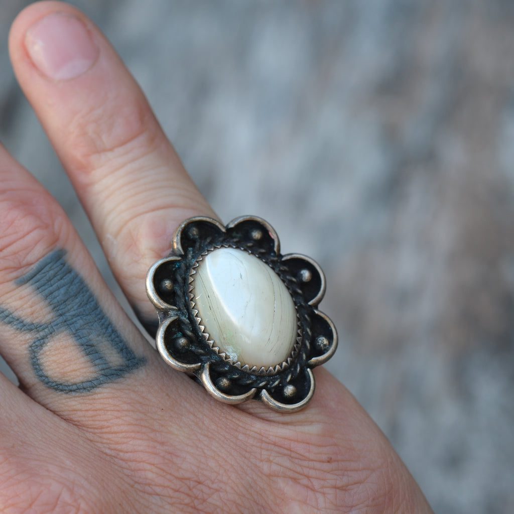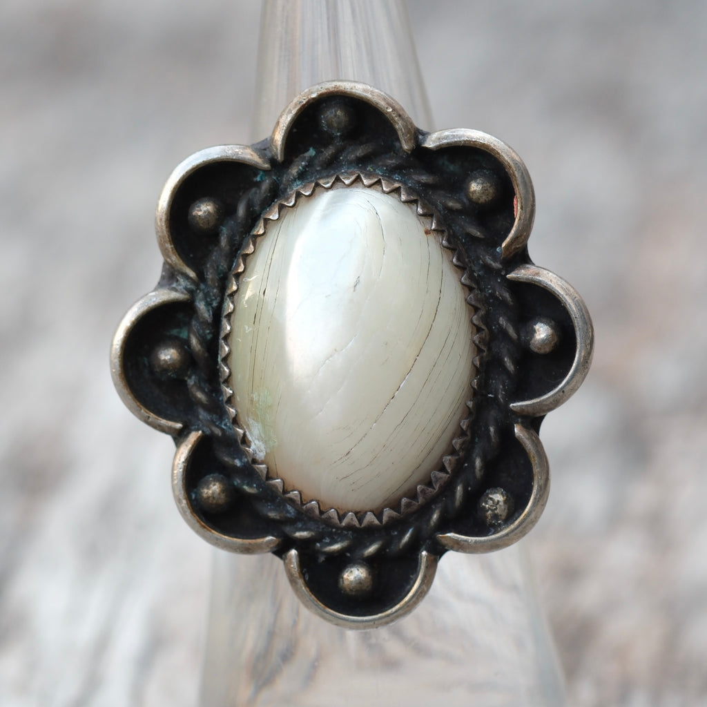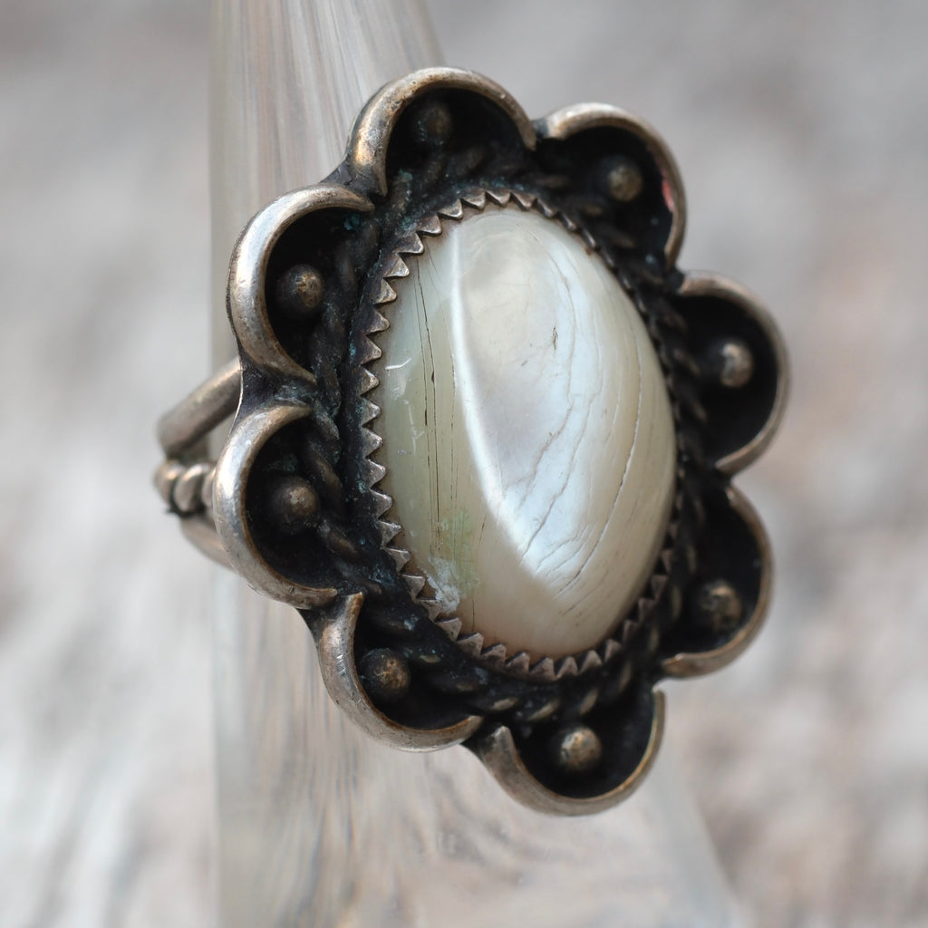 Vintage Sterling Mother Of Pearl Florette Ring 5.5