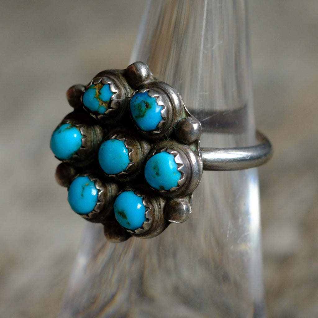 Vintage Sterling Turquoise Cluster Ring