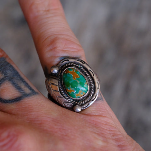 Vintage Sterling Turquoise Feather Ring 6.25