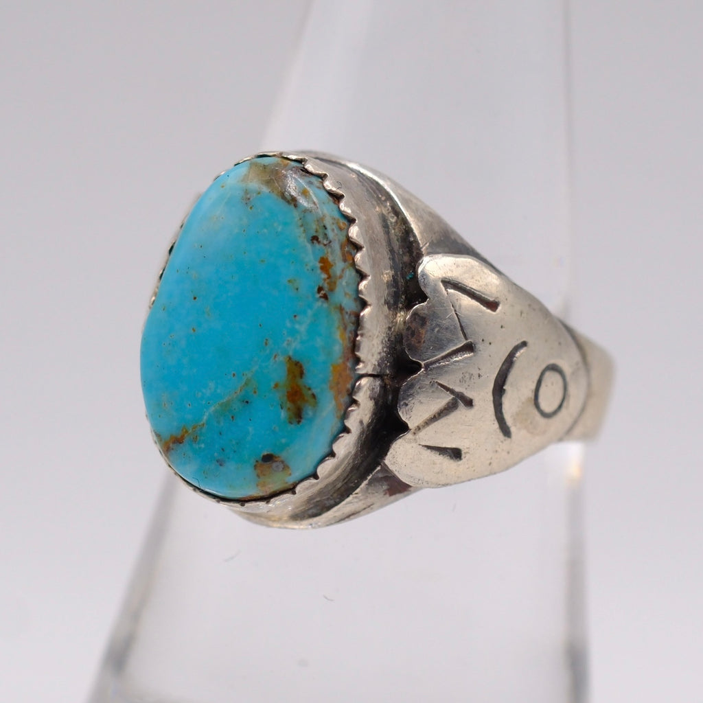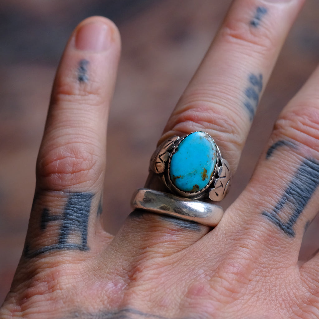 Vintage Sterling Turquoise Stamped Band Ring 8.25