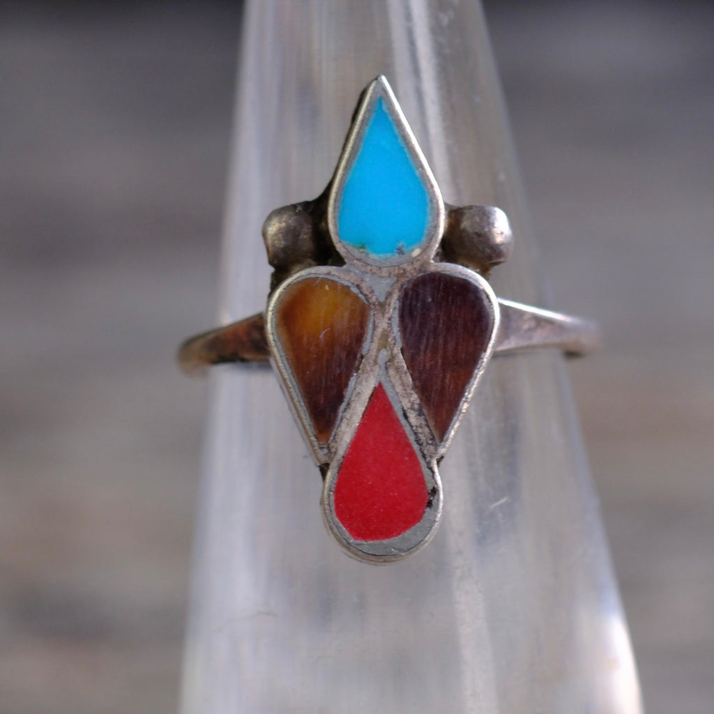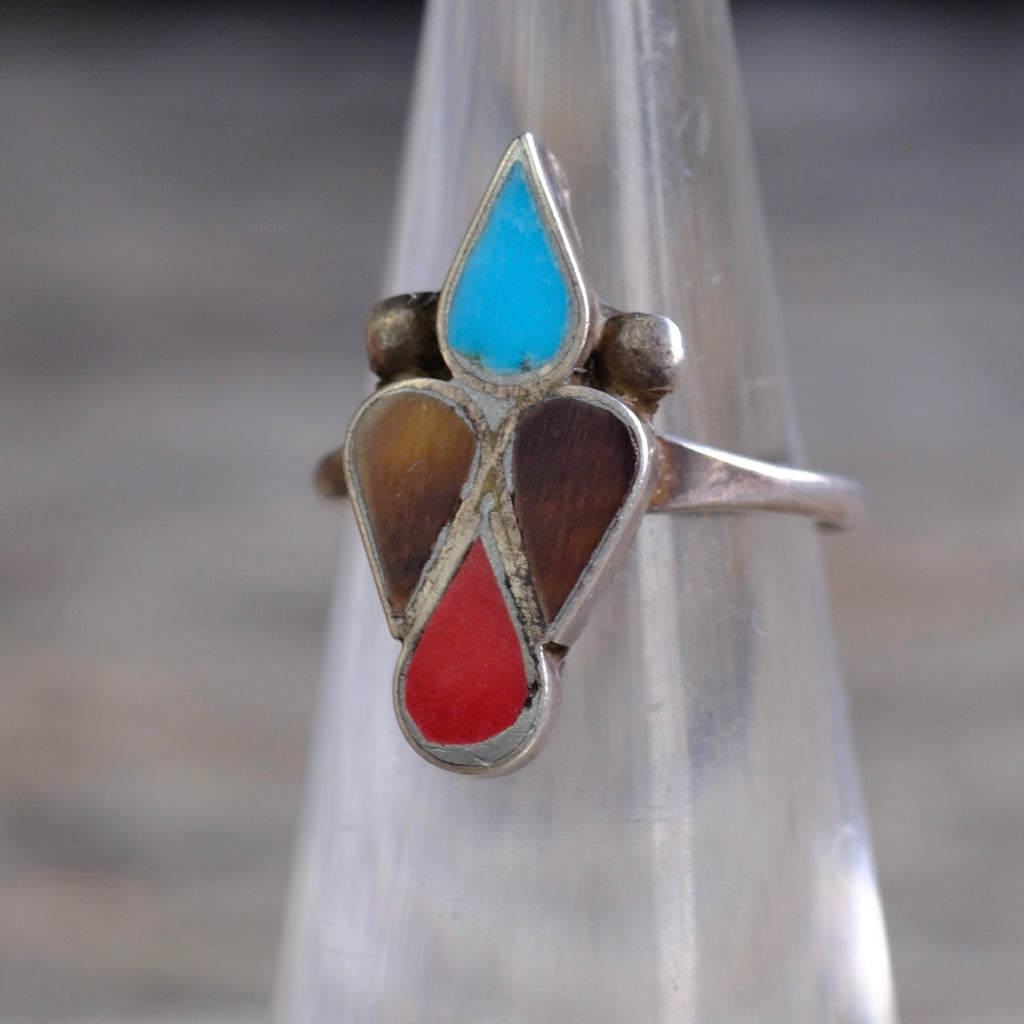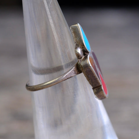 Vintage Sterling Turquoise Coral and Shell Inlay Ring