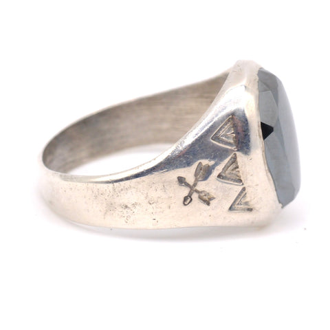 Vintage Sterling Hematite Stamped Arrows Ring 9.75