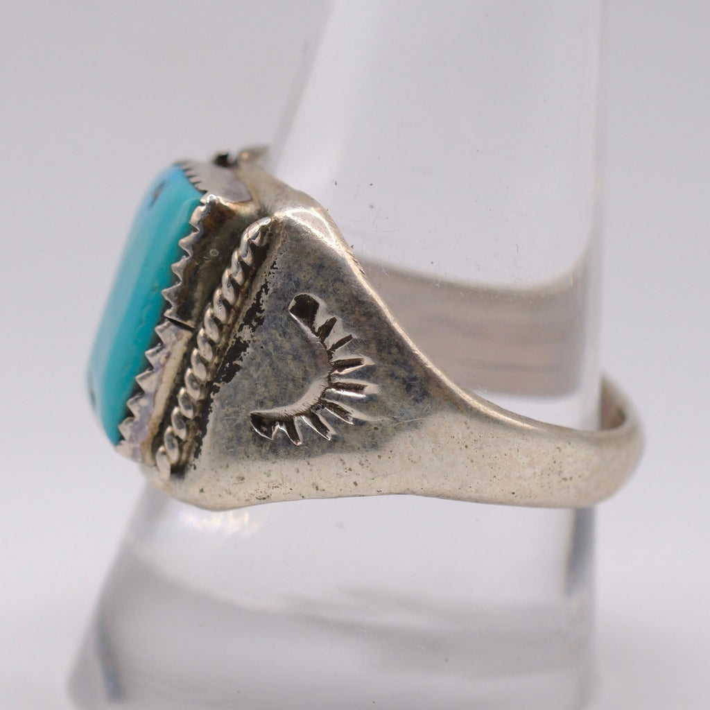 Vintage Sterling Turquoise Stamped Band Ring 10.75