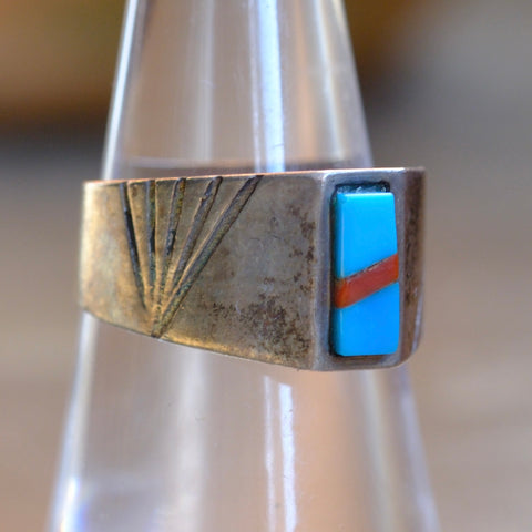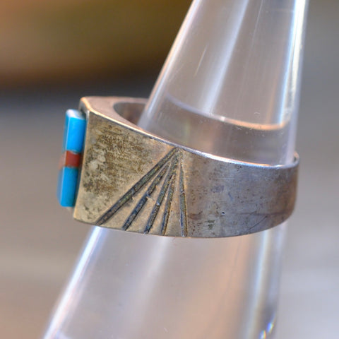 Vintage Sterling Turquoise and Coral Inlay Ring