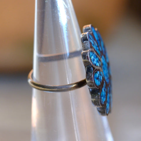 Vintage Sterling Turquoise Inlay Flower Ring 4.5
