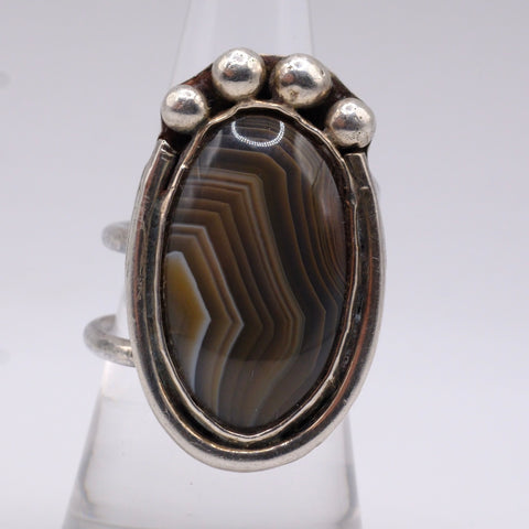 Vintage Sterling Agate Ring 7