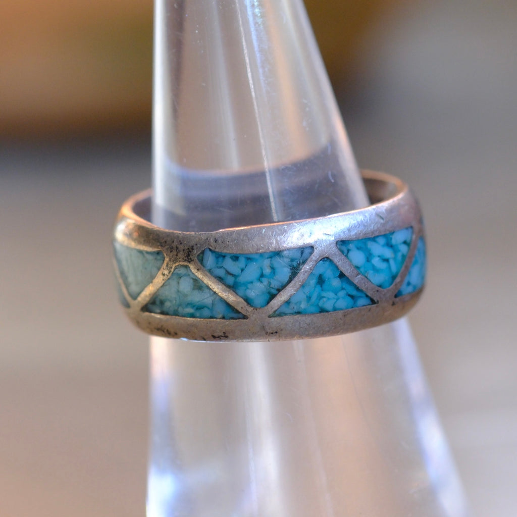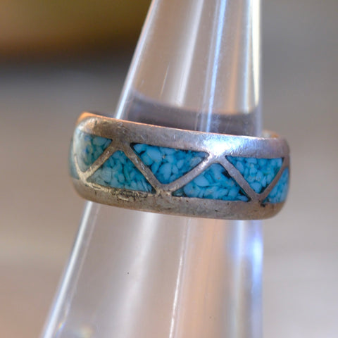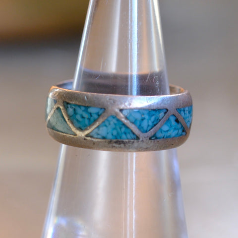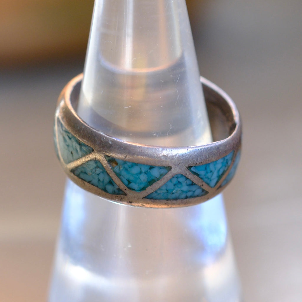 Vintage Sterling Crushed Turquoise Inlay Band 6