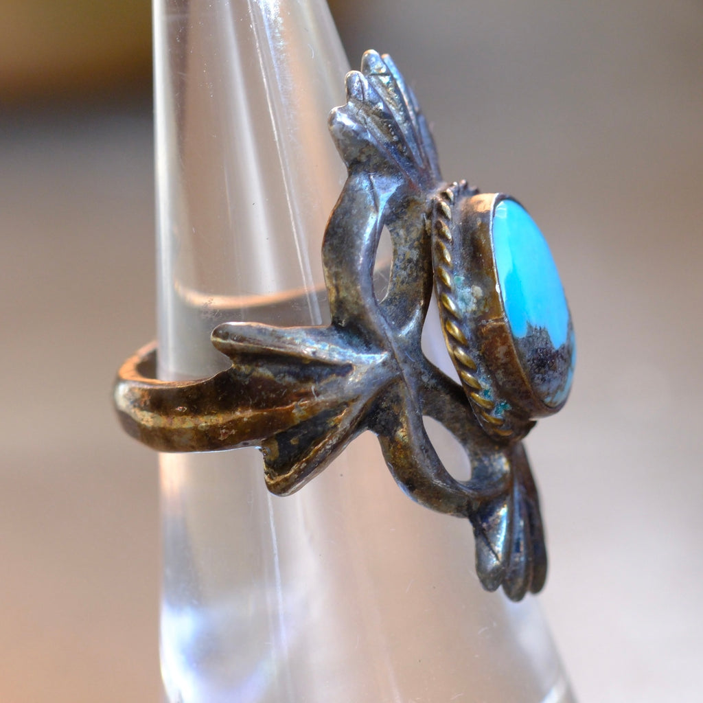 Vintage Sterling Turquoise Sandcast Ring 6.5