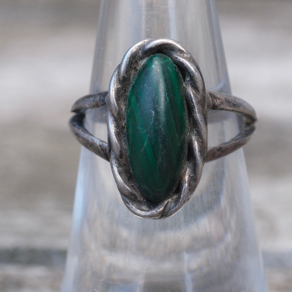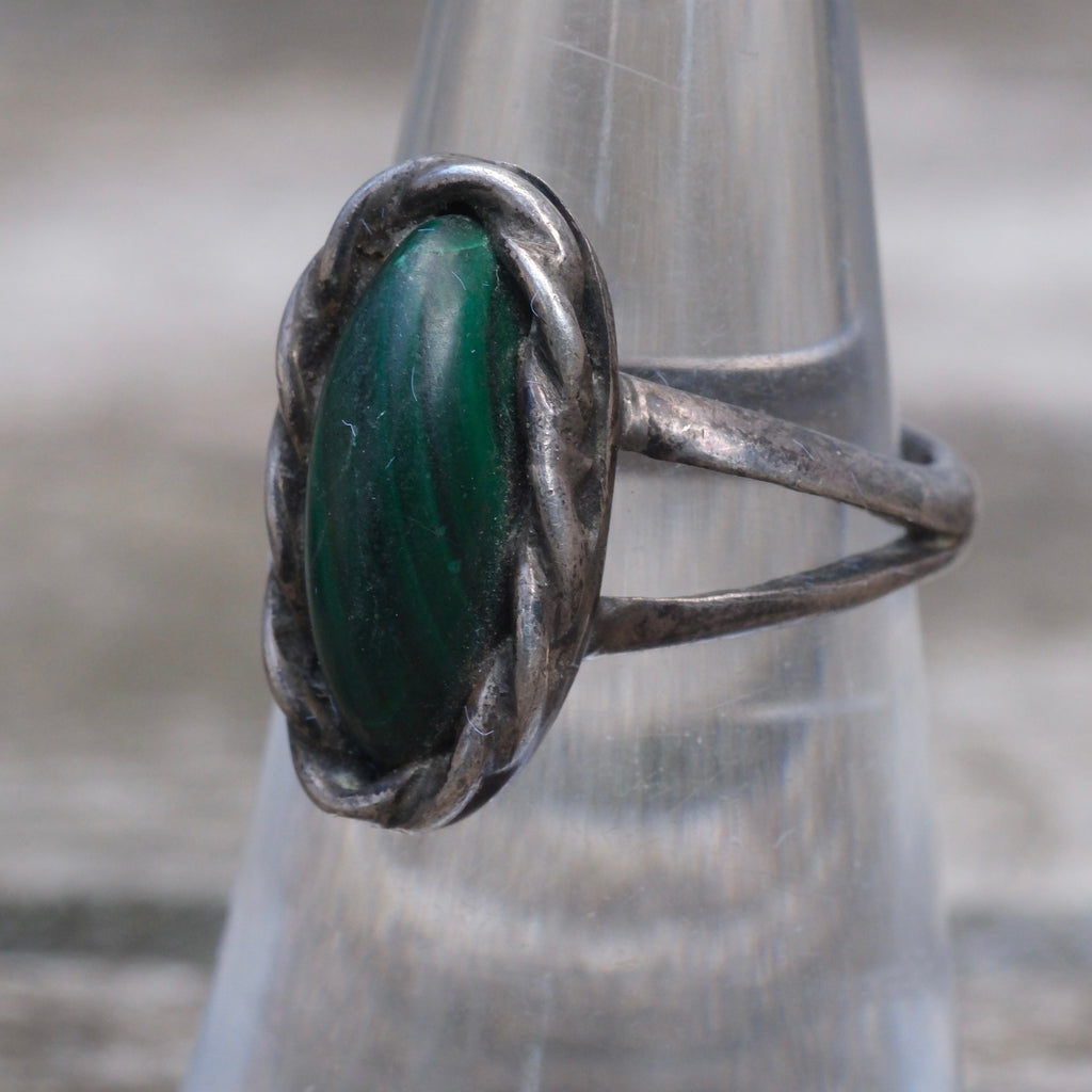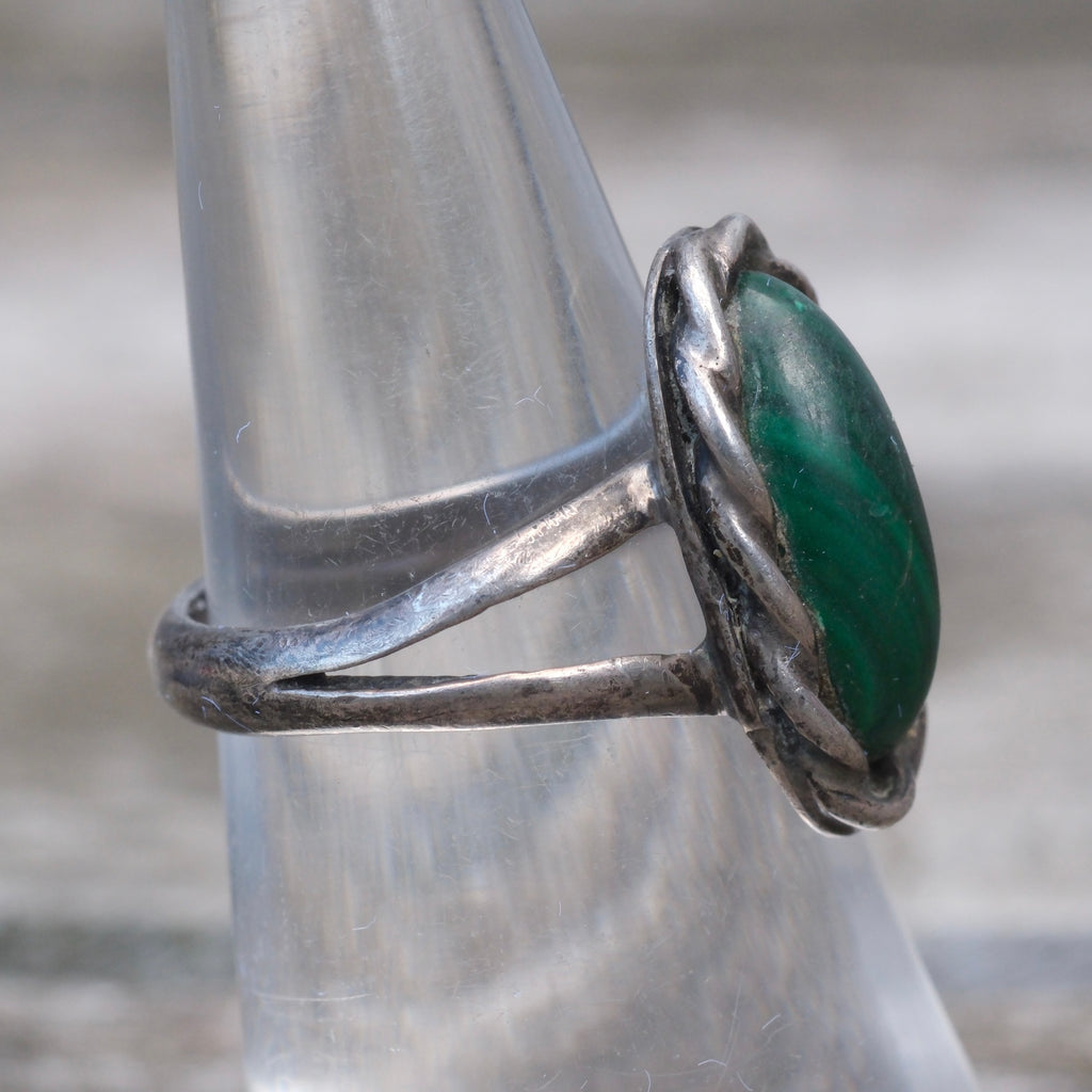 Vintage Sterling Malachite Roper RIng 6