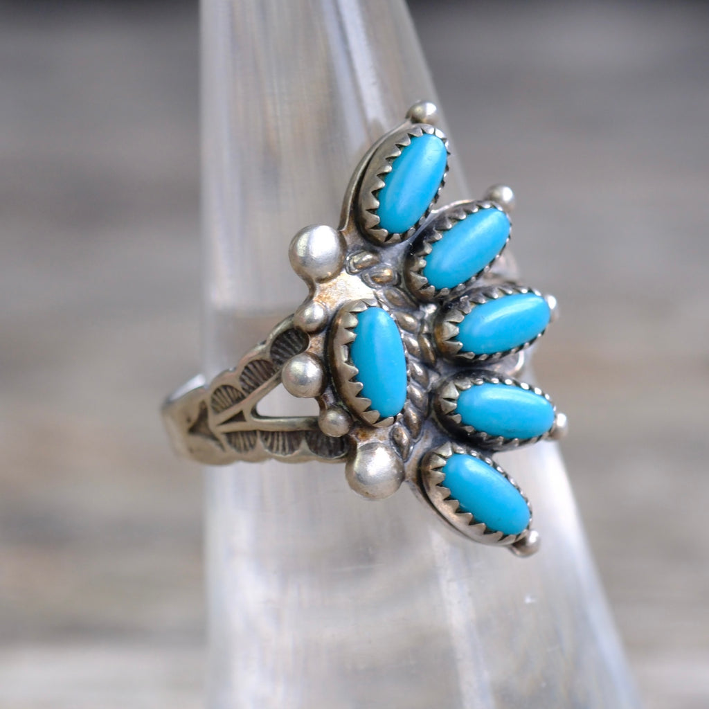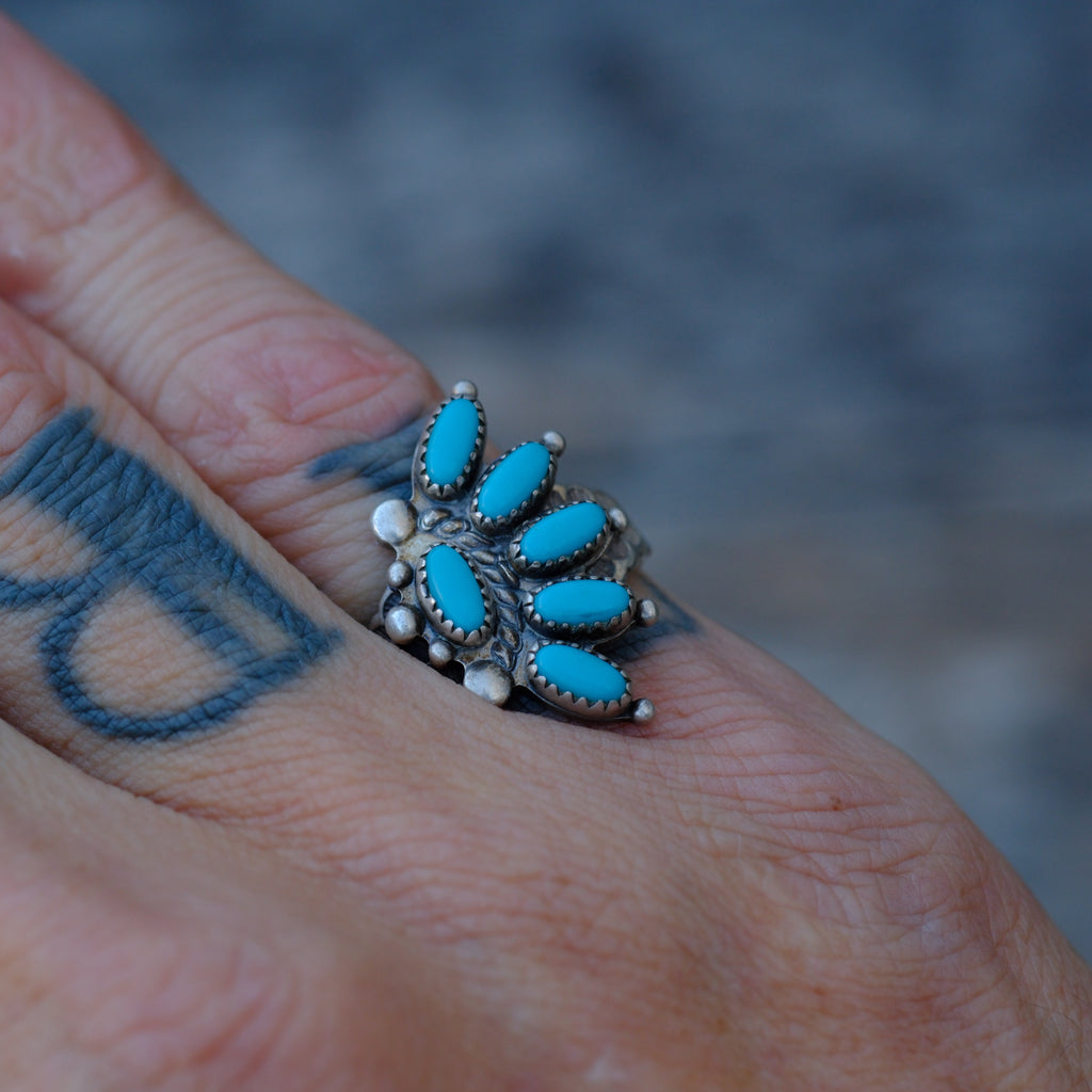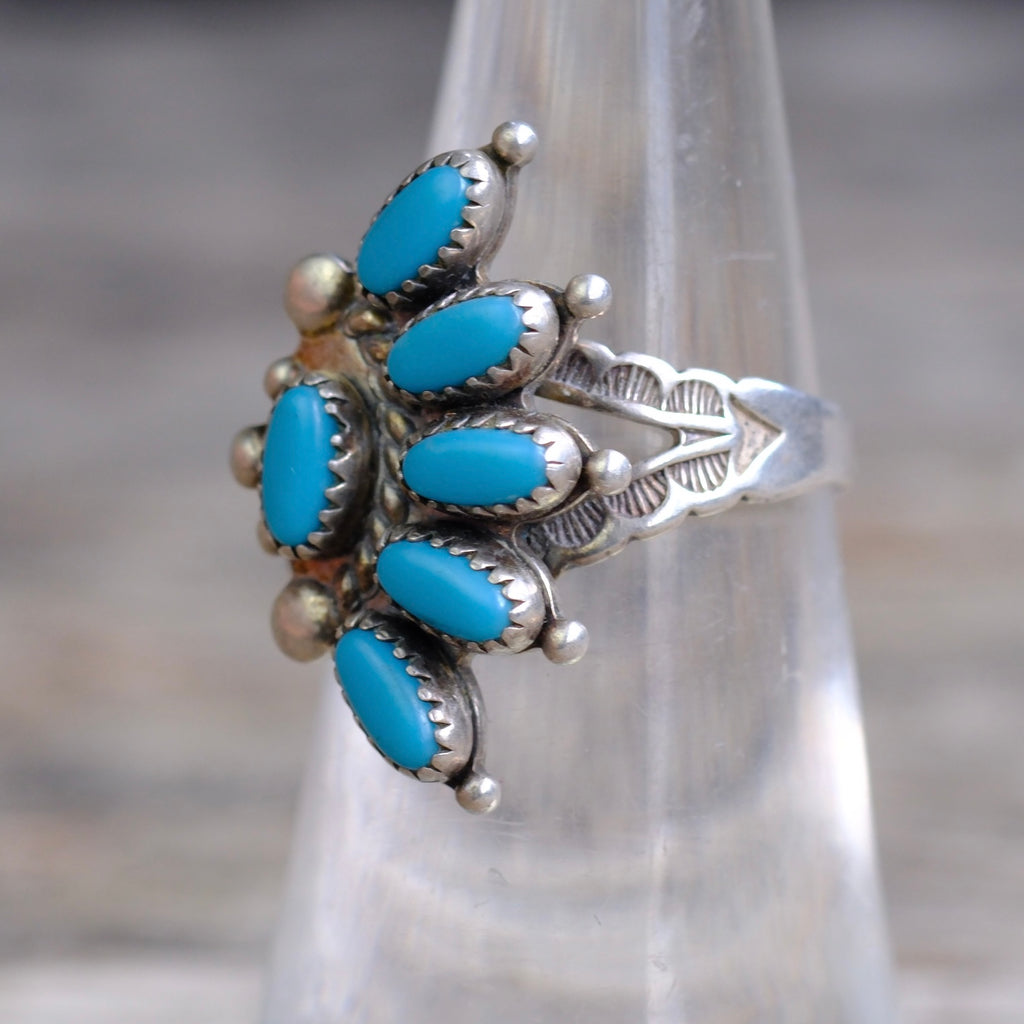 Vintage Sterling Turquoise Cluster Ring