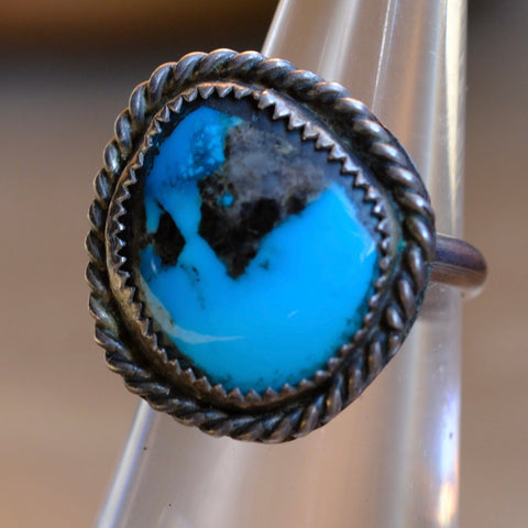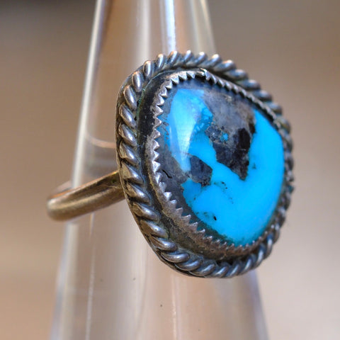 Vintage Sterling Turquoise Roper Ring 5.25