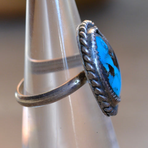 Vintage Sterling Turquoise Roper Ring
