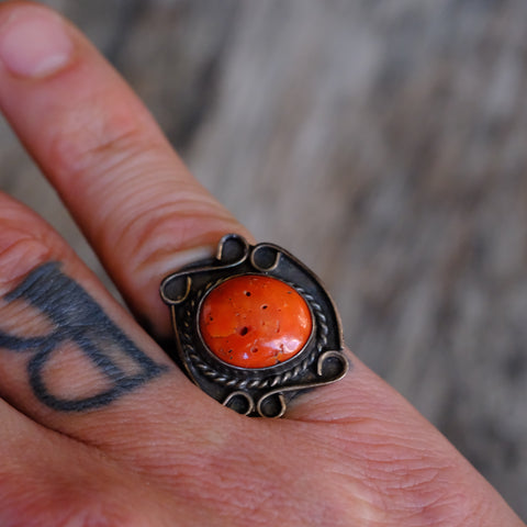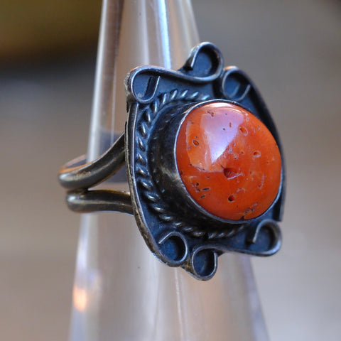 Vintage Sterling Coral Ring