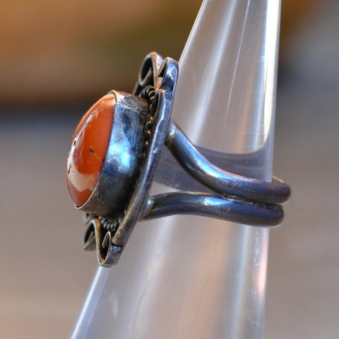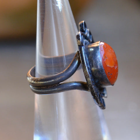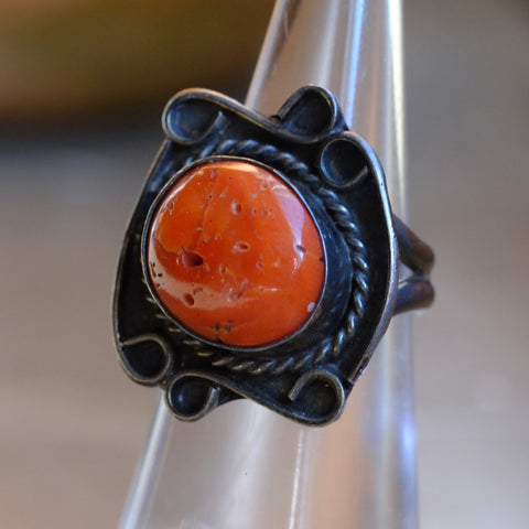 Vintage Sterling Coral Ring 4.75