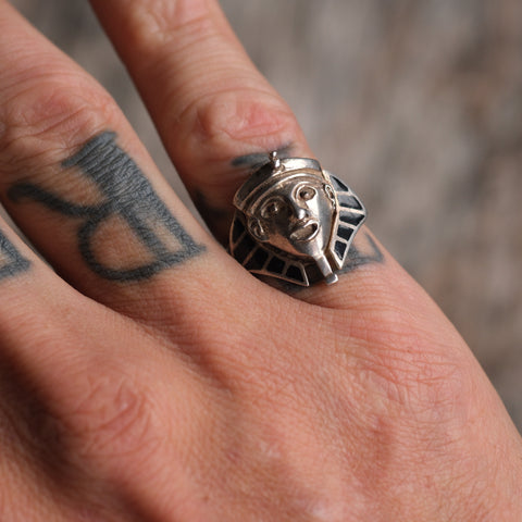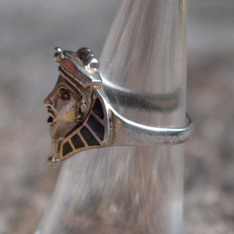 Vintage Sterling Silver Pharoah Poison Ring 5.75