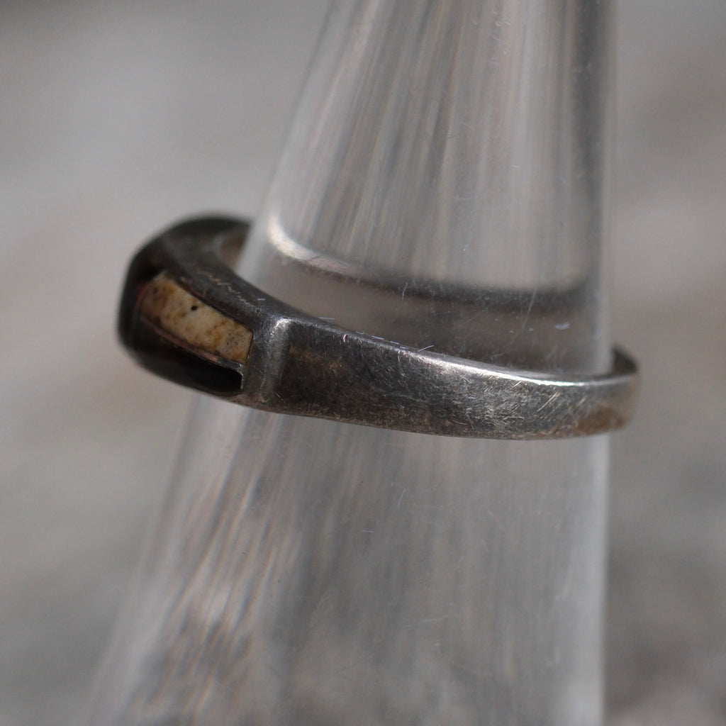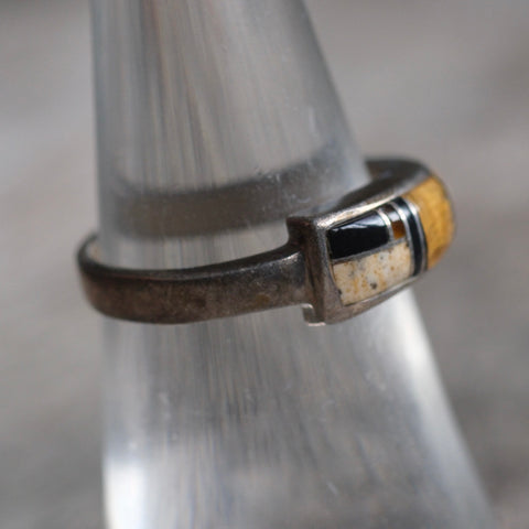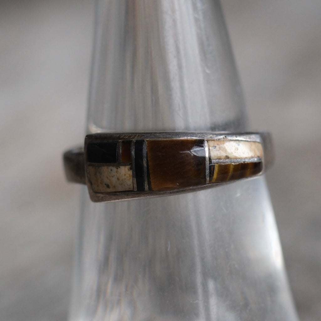 Vintage Sterling Tigers Eye and Onyx Inlay Band 6.25