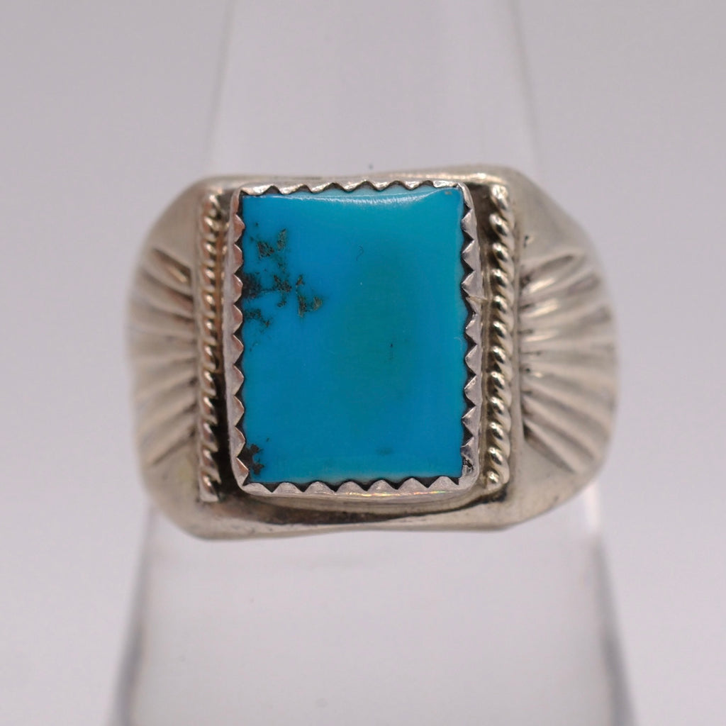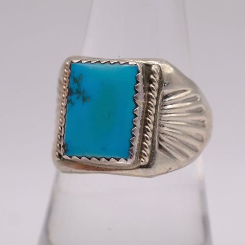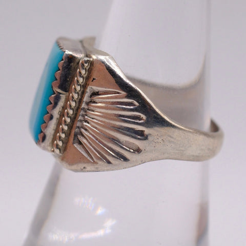 Vintage Sterling Turquoise Stamped Band Ring 8.25