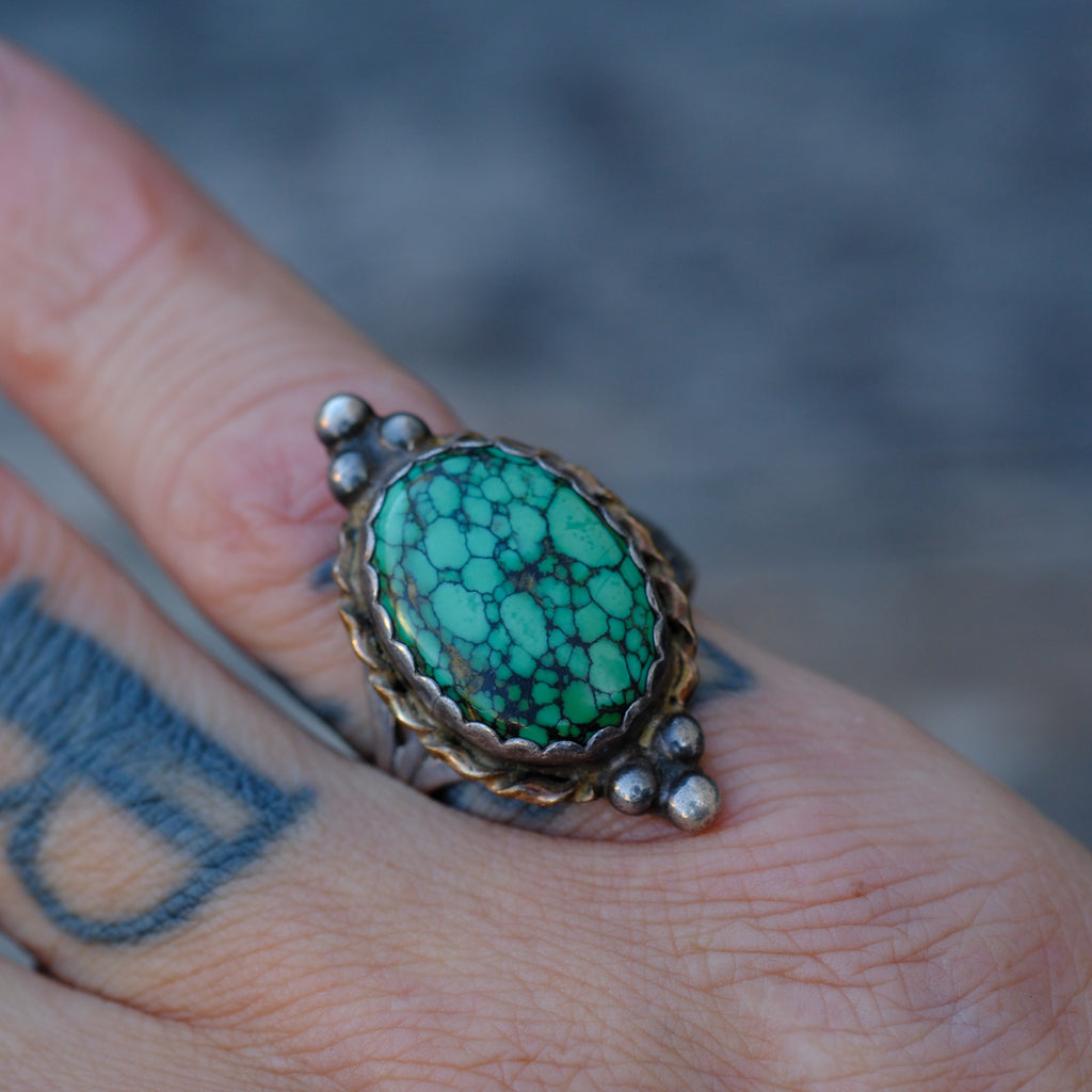 Vintage Sterling Spiderweb Turquoise Ring 7.75