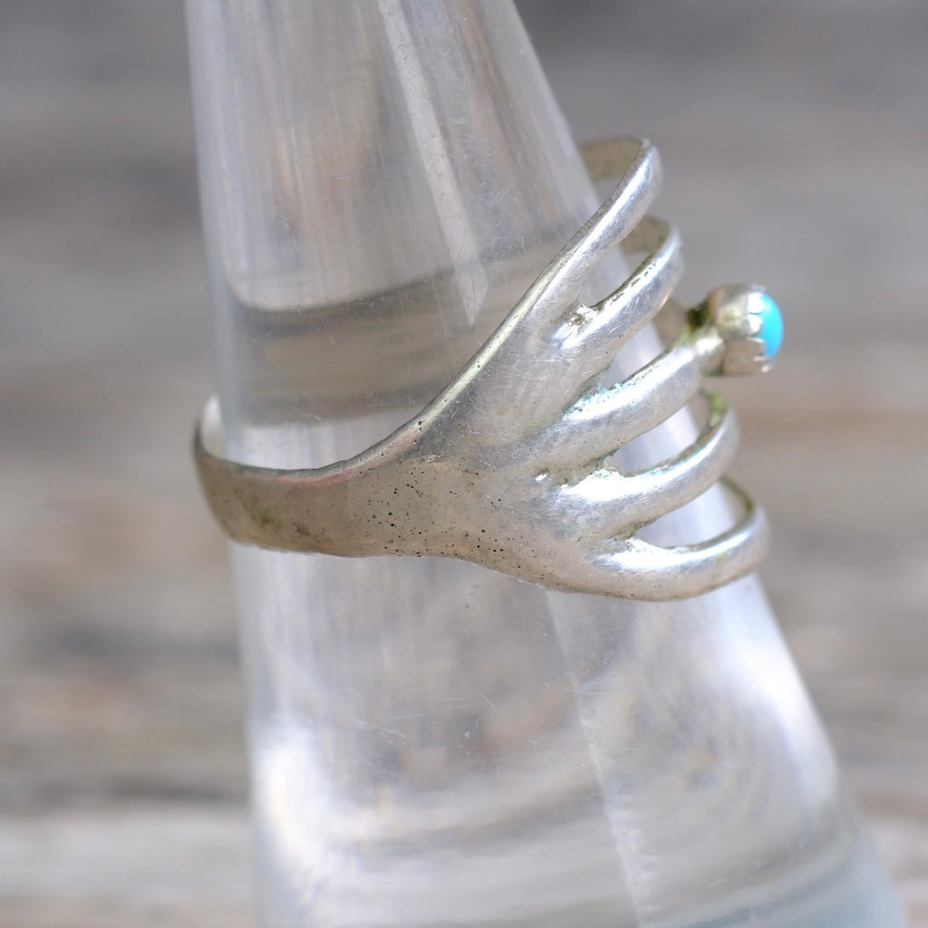 Vintage Sterling Turquoise Sandcast Ring