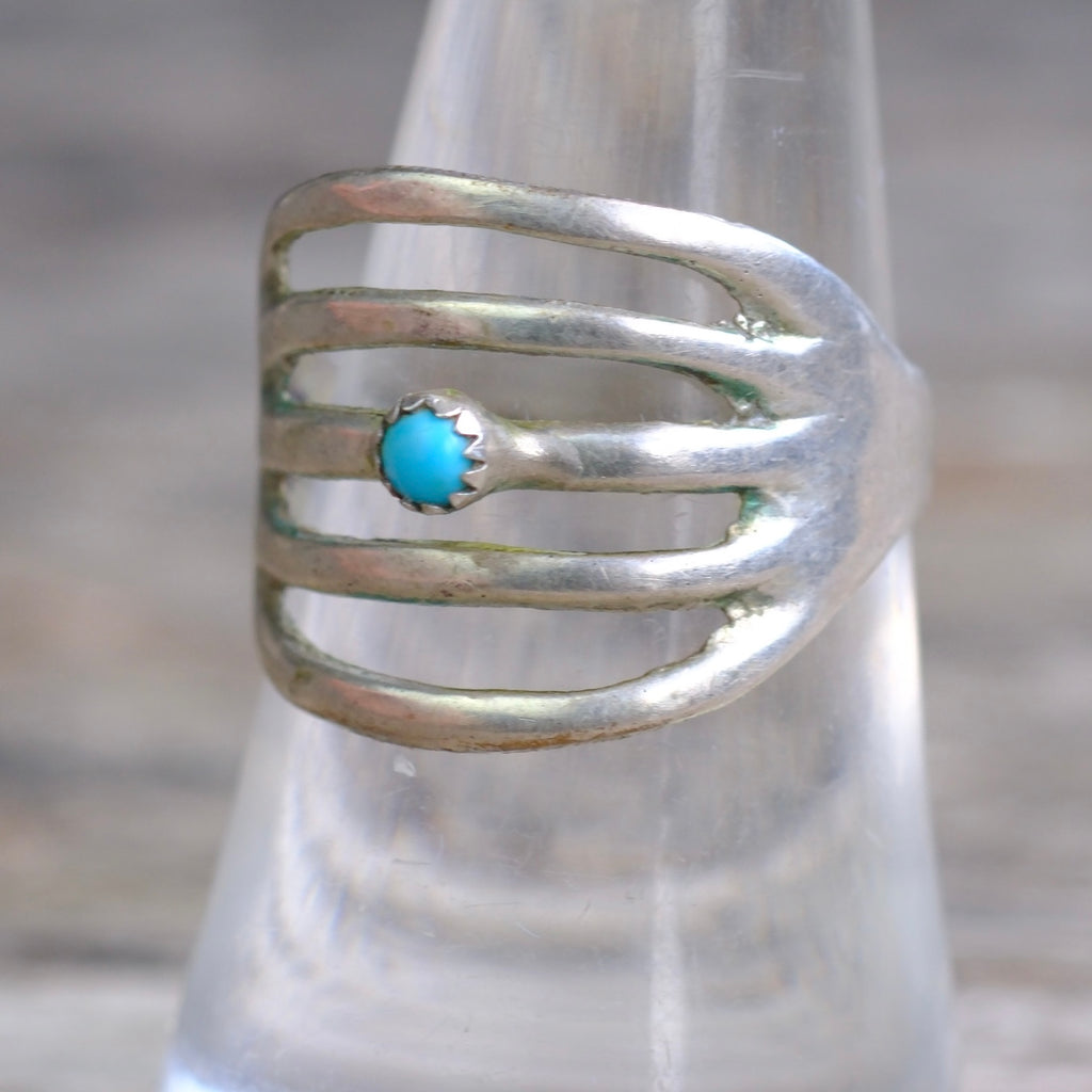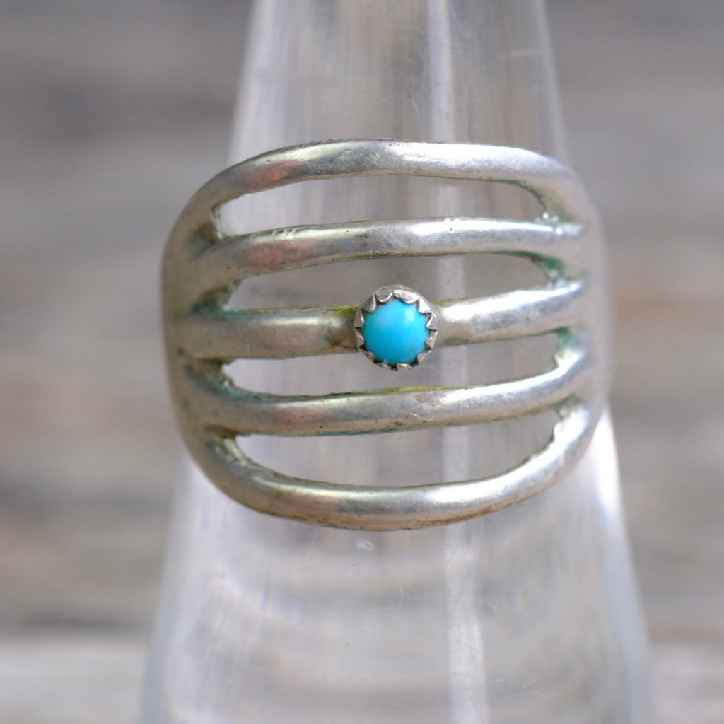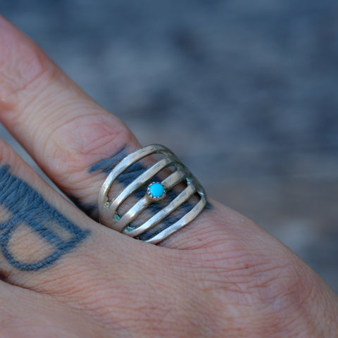 Vintage Sterling Turquoise Sandcast Ring 7.5