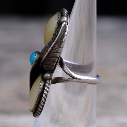 Vintage Sterling Mother Of Pearl and Turquoise Ring 4.5