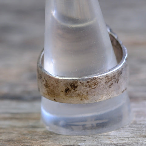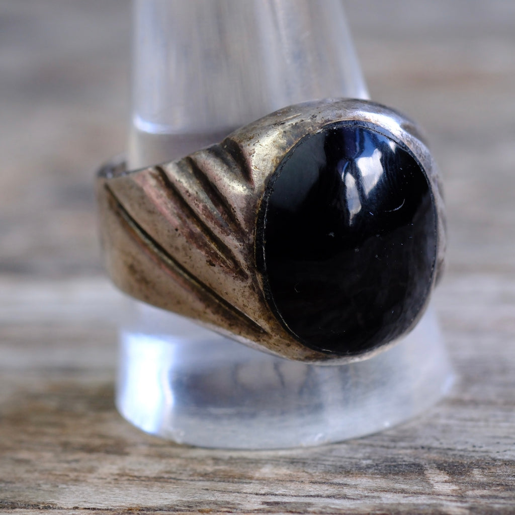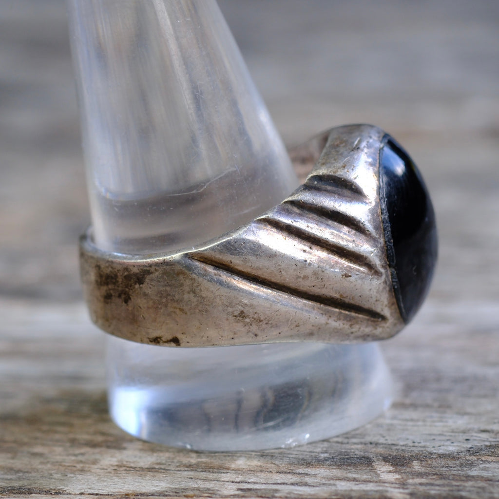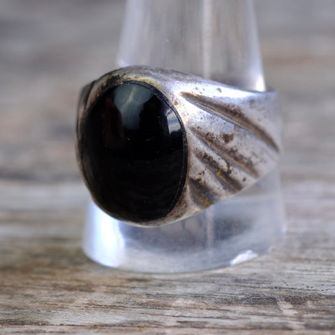 Vintage Sterling Onyx Ribbed Band Ring 12.25