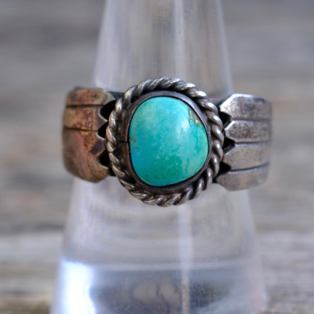 Vintage Sterling Turquoise Ribbed Band Ring 9.75