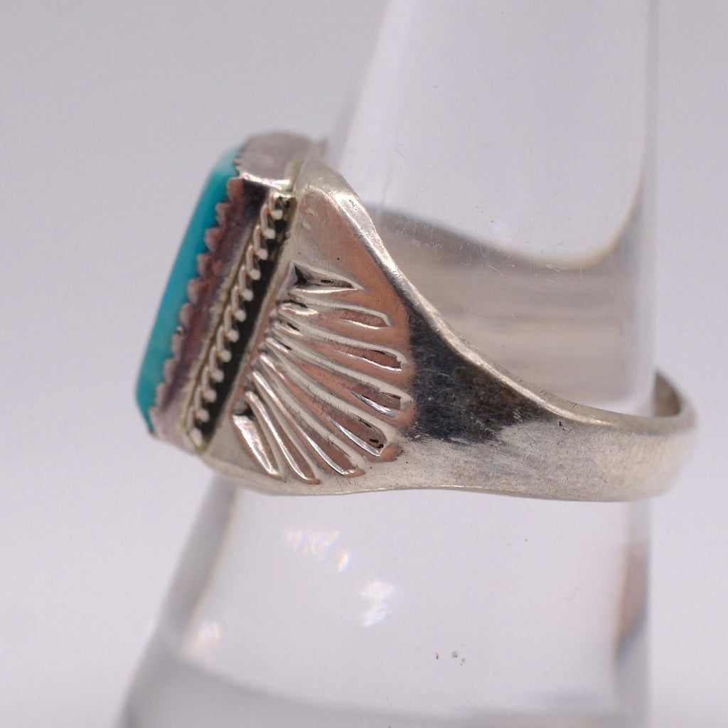 Vintage Sterling Turquoise Stamped Band Ring 9.25