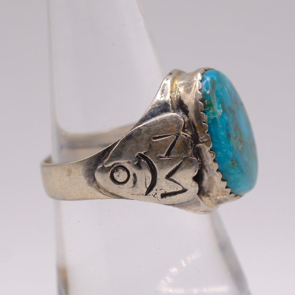 Vintage Sterling Turquoise Stamped Band Ring