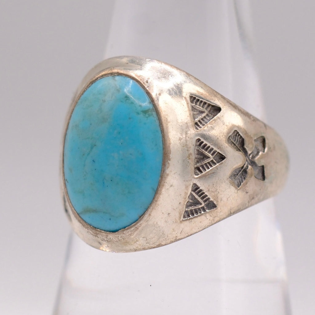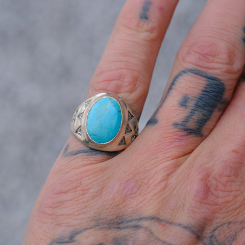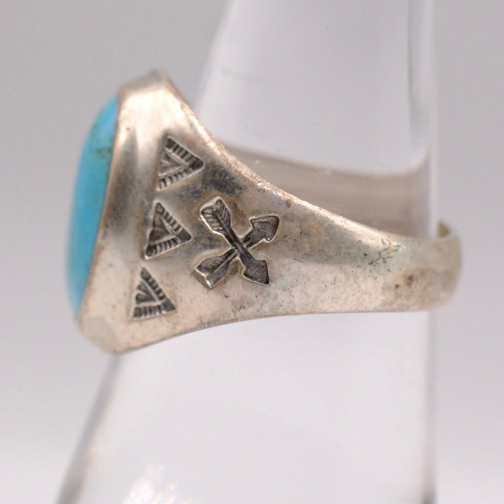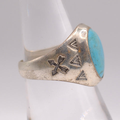 Vintage Sterling Turquoise Stamped Arrows Ring 7.5