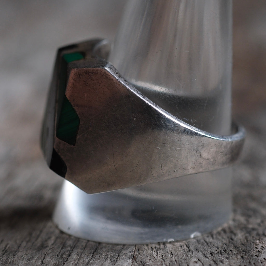 Vintage Sterling Malachite and Onyx Inlay Striper Ring 13