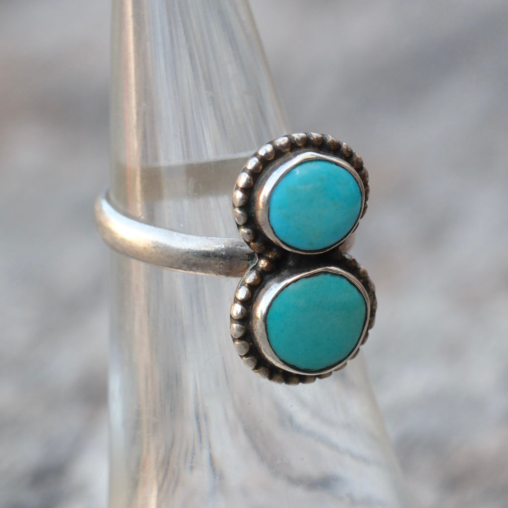 Vintage Sterling 2-Stone Turquoise Ring 4.75