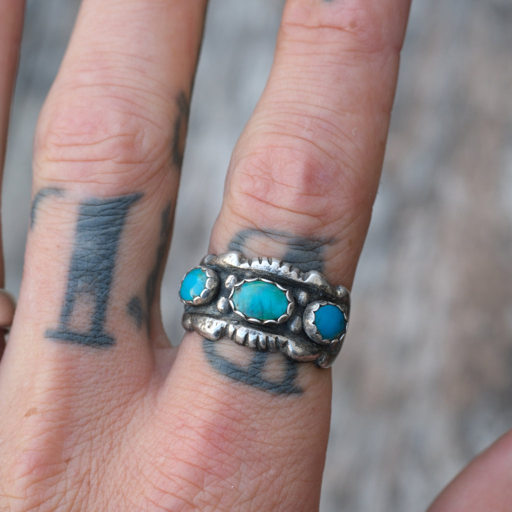 Vintage Sterling 3-Stone Turquoise Ring 9.5