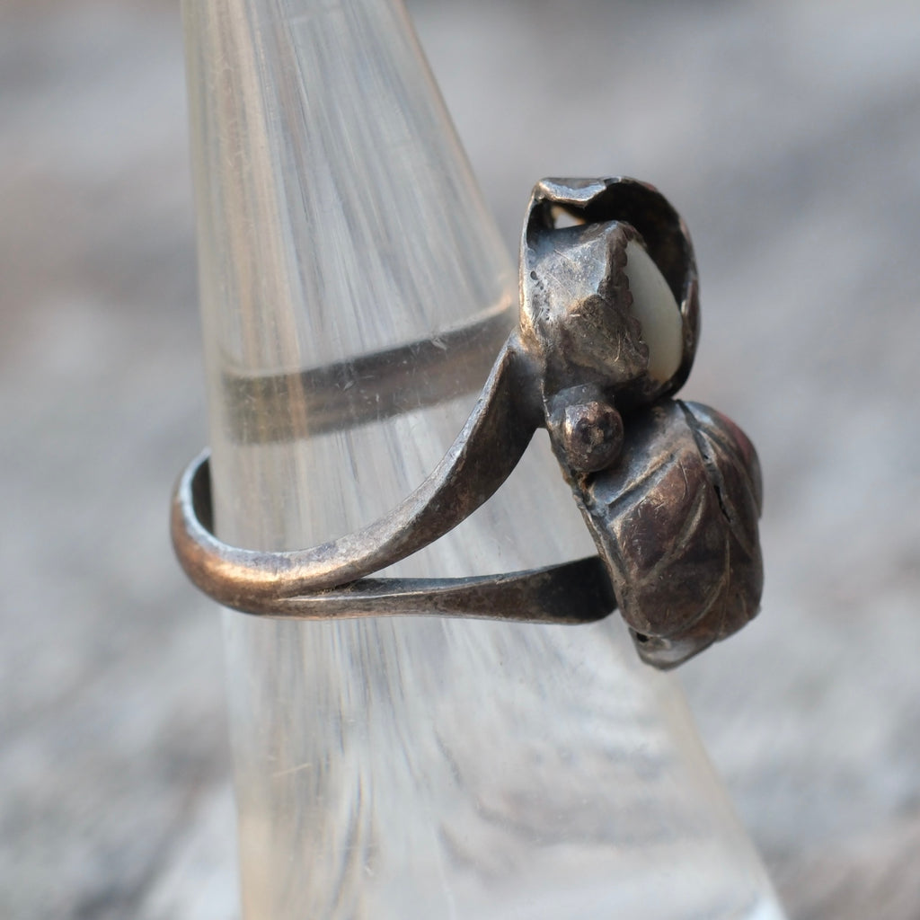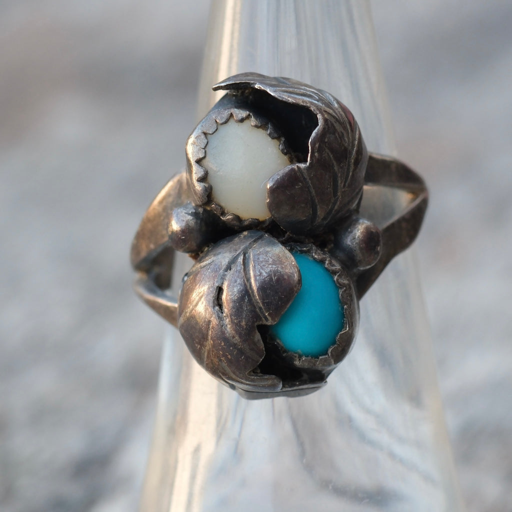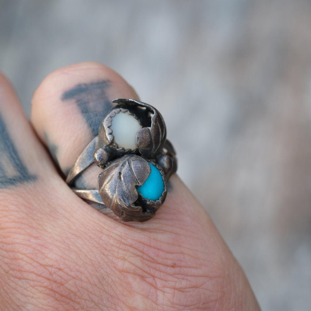 Vintage Sterling Turquoise and MOP Feather Ring