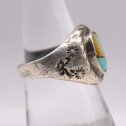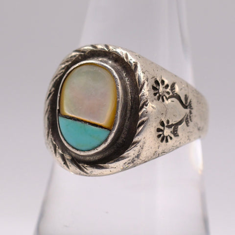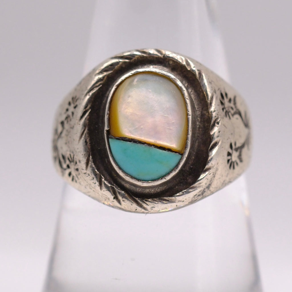 Vintage Sterling Turquoise and Mother Of Pearl Inlay Ring