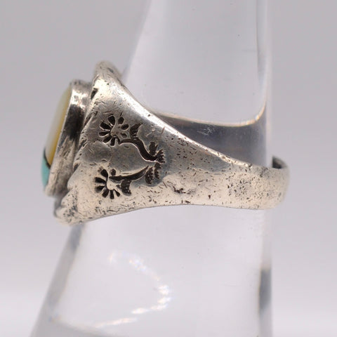 Vintage Sterling Turquoise and Mother Of Pearl Inlay Ring 8.5