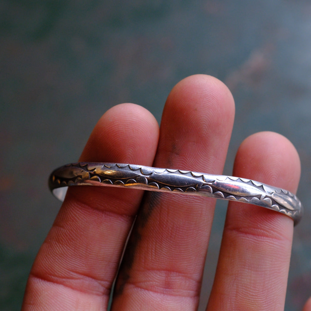 Vintage Sterling Silver Stamped Triangle Cuff Bracelet 6.5"