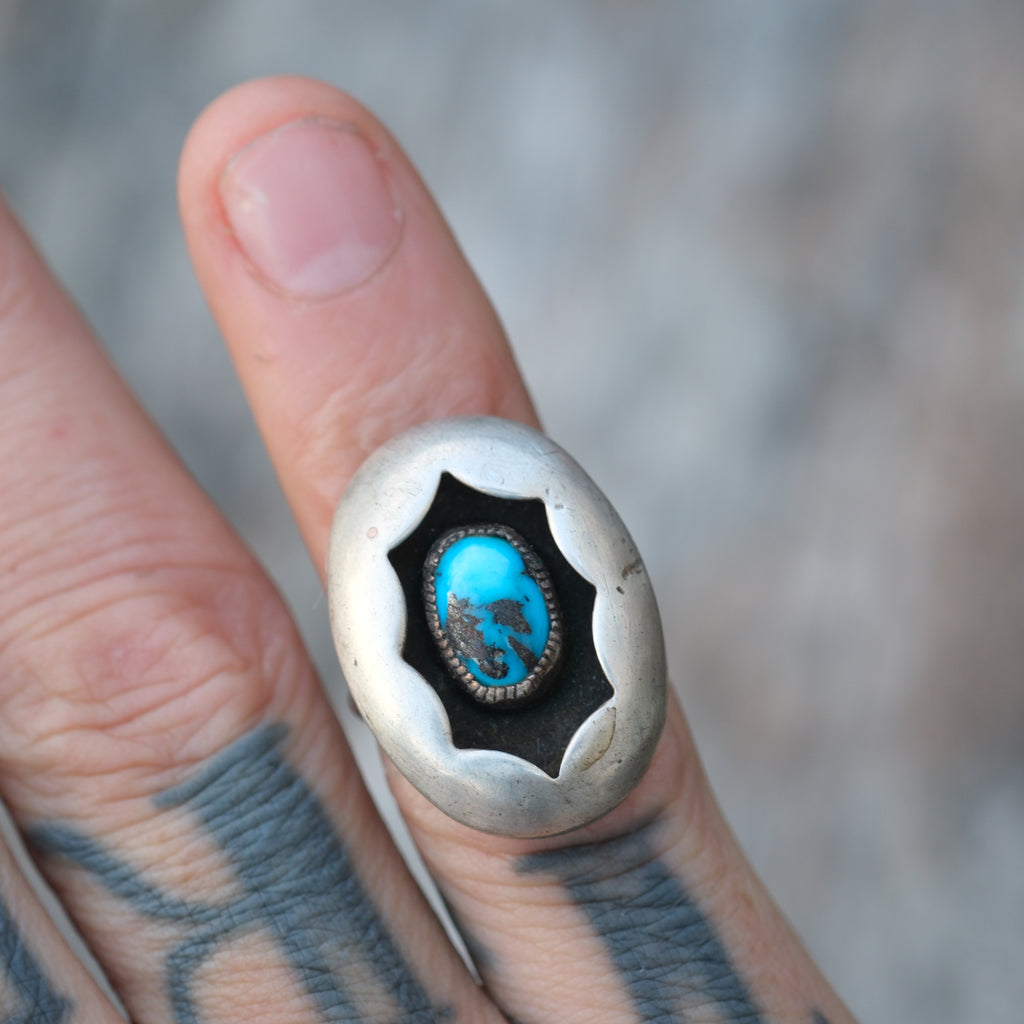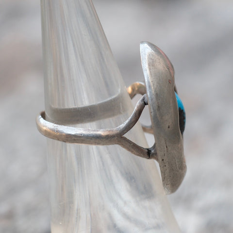 Vintage Sterling Turquoise Shadowbox Ring 4.5