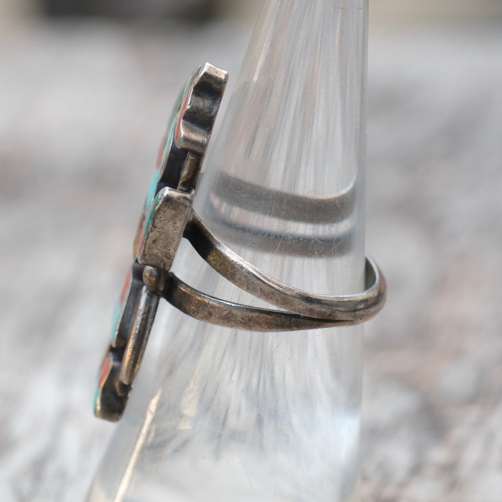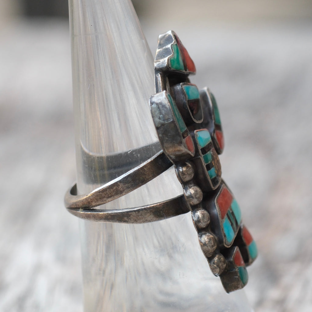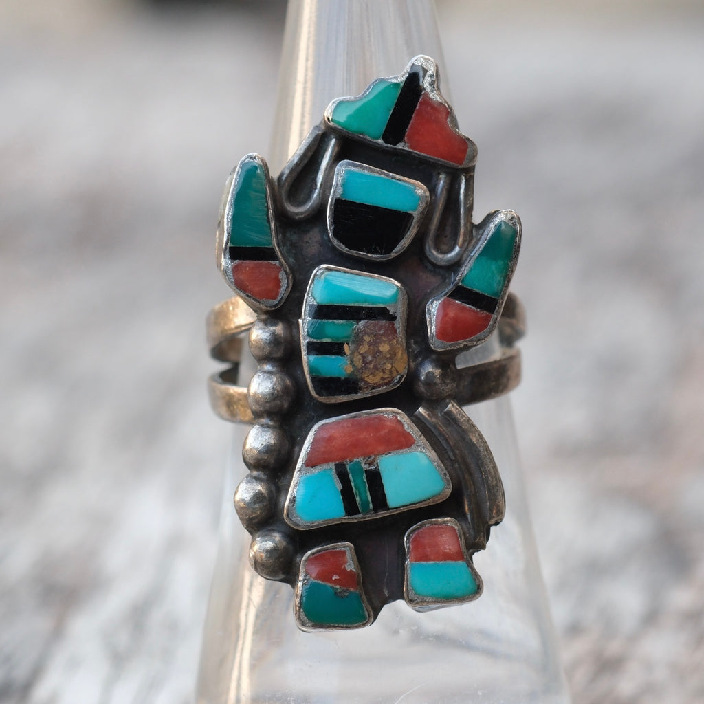 Vintage Sterling Multistone Inlay Kachina Ring 6.5