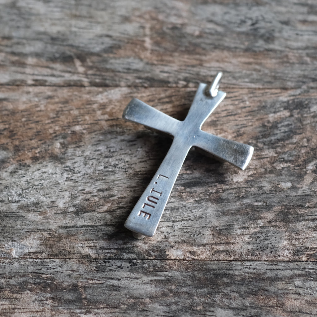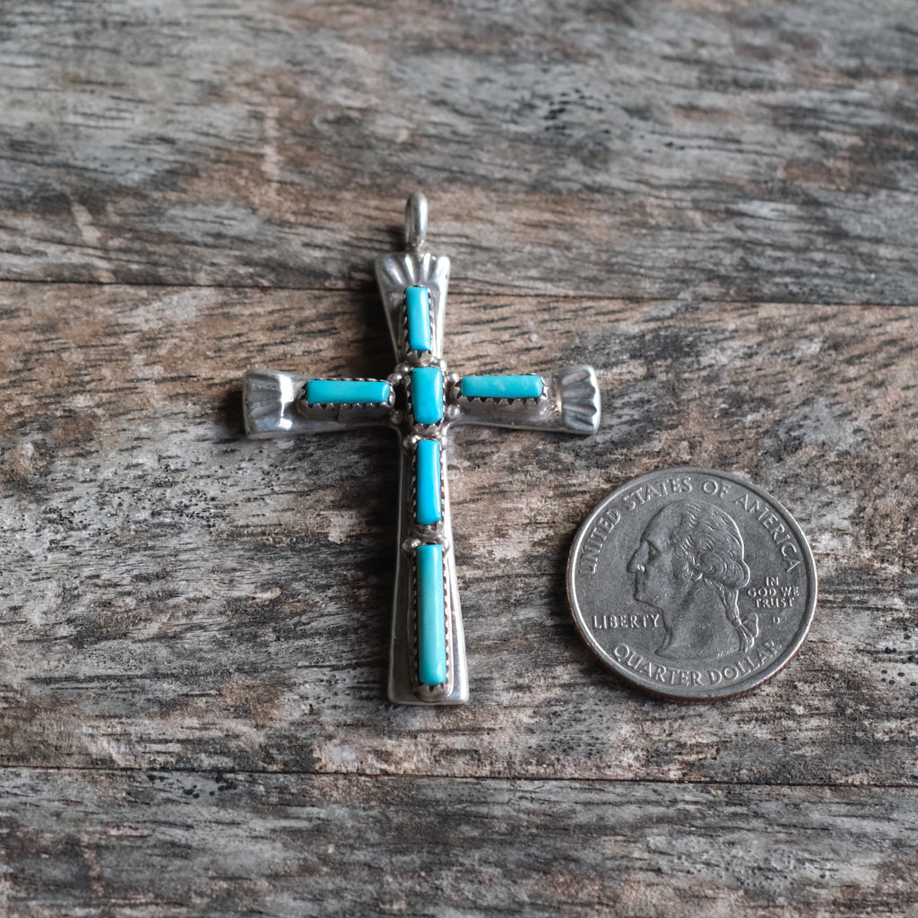 Vintage Sterling 7-Stone Coral Cross Necklace